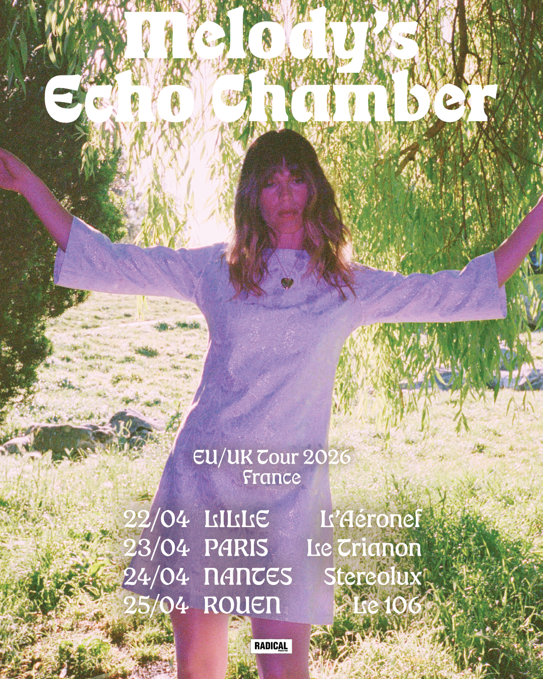 Melody's Echo Chamber, joyau hexagonal de la pop psychédélique, annonce une tournée européenne au printemps 2026, et sera de passage en France à Lille, Paris, Nantes et Rouen. Elle défendra sur scène le très attendu « Unclouded », son nouvel album studio à paraître le 05 décembre 2025 via Domino Records. Les singles Daisy et In The Stars sont dès maintenant disponibles à l’écoute.