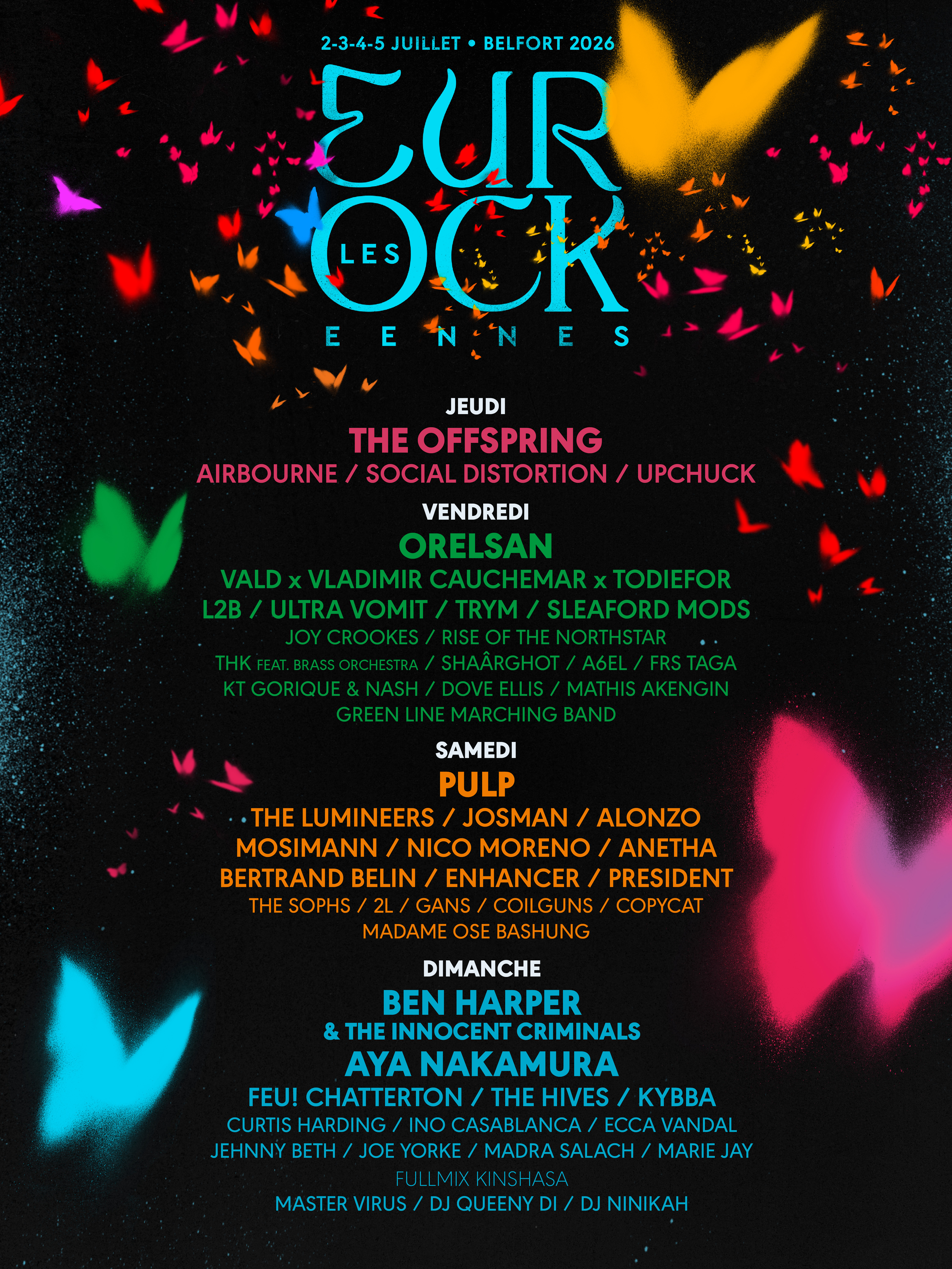 Une pensée émue pour toutes les âmes organisées qui ont déjà bouclé leurs vacances sur la période du 2 au 5 juillet 2026 : vous n'aurez sans doute pas vraiment la tête à votre mojito ou à votre petite rando à 1000 m de D+ avec Églantine (3 ans) sur le dos puisque Sleaford Mods (3/07), Jehnny Beth (05/07) et Ecca Vandal (05/07) rejoignent aujourd'hui The Hives (05/07), The Sophs (04/07) et Upchuck (02/07) à l'affiche de la très belle édition 2026 des Eurockéennes de Belfort !